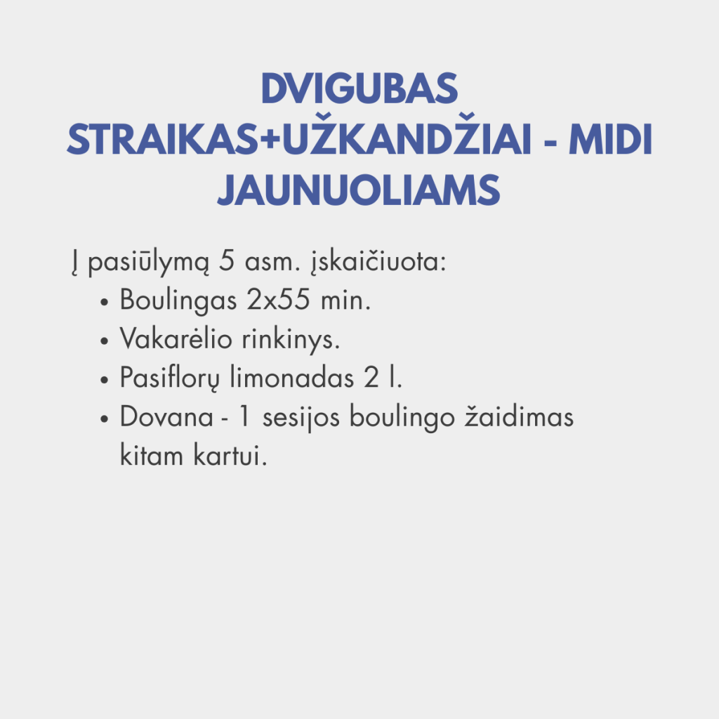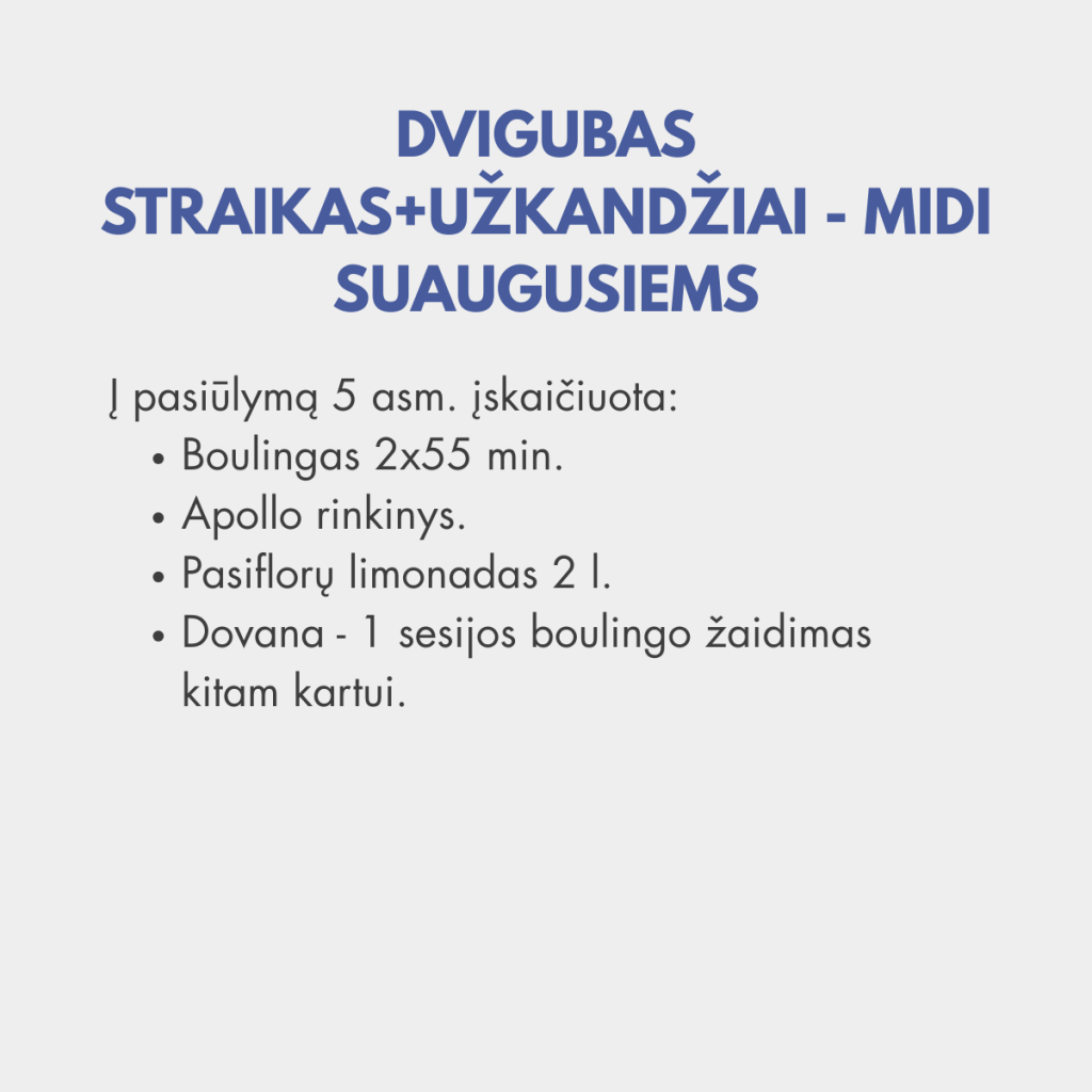 👉 2 boulingo sesijos (2 x 55 min.)